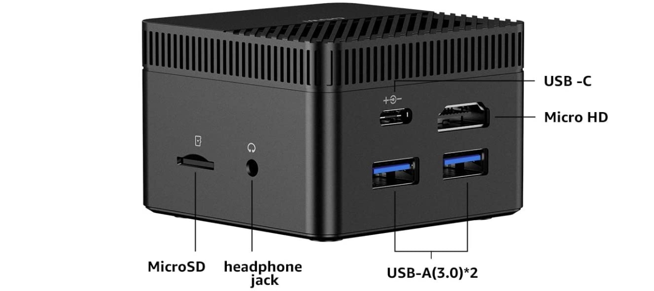 포트는 3.5mm 오디오 잭, HDMI 포트 1개, USB 3.0 포트 2개, USB-C 포트 1개가 후면에 배치되어 있다.